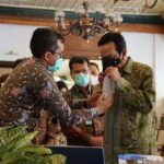 YOGYAKARTA – Gubernur DIY, Sri Sultan Hamengkubuwono X, mencoba alat diagnosis cepat infeksi Sars-Cov2 melalui embusan nafas buatan UGM, saat menerima pimpinan