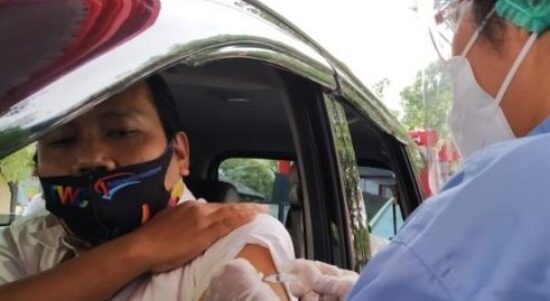 Sleman – Sekitar 5.000 orang pelaku wisata, petugas pelayanan publik, transportasi mendapatkan suntikan vaksin Covid-19 dosis pertama secara drive thru, atau lantatur, di kompleks Candi