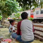 Jajan Soto Ayam Pak Genit Duduk Lesehan Sambil Melihat Lalu-lalang KA