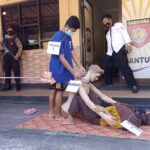 BANTUL –-Reka ulang kasus pembungkus berencana terhadap bos pabrik wajan, Budiantoro (38) dilaksanakan di halaman Mapolres Bantul, Kamis (22/4). Dalam pembunuh